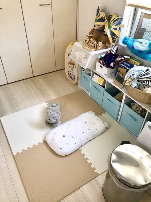 今日は衣替えした。 もうサイズアウトした短肌着を額縁に入れて飾ってみた。 大きくなったなぁ…😂 寝返り練習のためにジョイントマットをひいてみた。 物に溢れたベビールーム、もう少しなんとかしたいな pic.twitter.com/aEhDTZxXd1