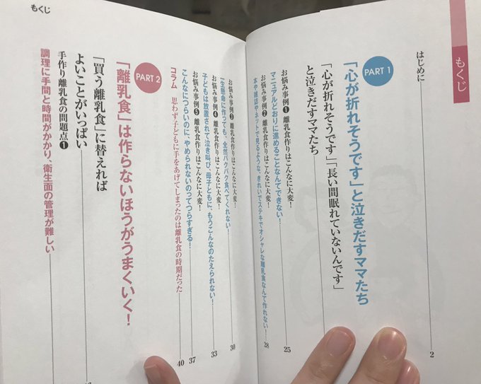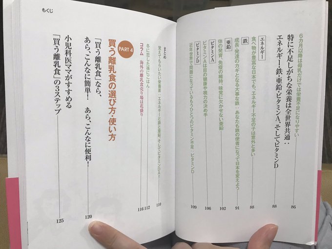 小児科医のママが教える 離乳食は作らなくてもいいんです。が届きました。 ひとまずざっと目次に目を通す。 まだ冒頭しか読んでないけれど、この本は離乳食面倒って理由から市販を推してるのではなく、医学的根拠にもとづき手作り離乳食よりも栄養価の高い市販品を推奨しているところが良いなと。 pic.twitter.com/oVD8UlJINr