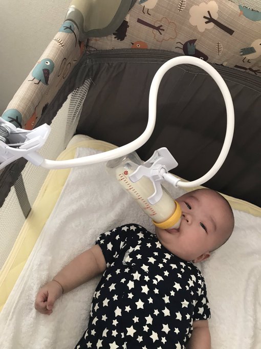 スリコで購入した300円のスマホのクリップホルダーをおもちゃやミルクを挟んで使ってみた。 おお、ミルク飲んだ…😳 (哺乳瓶は母乳実感のガラス製で200cc入り) これは多胎児育児にうってつけでは…? 動画撮影したのをリプライに貼り付けておきます。 ※使用は自己責任で、目を離さずにです🙇🏻♀️ twitter.com/happy365daylif… pic.twitter.com/qo0JRgznIy
