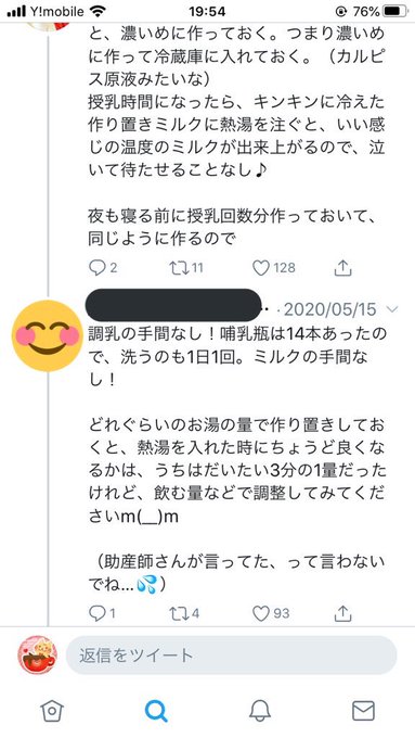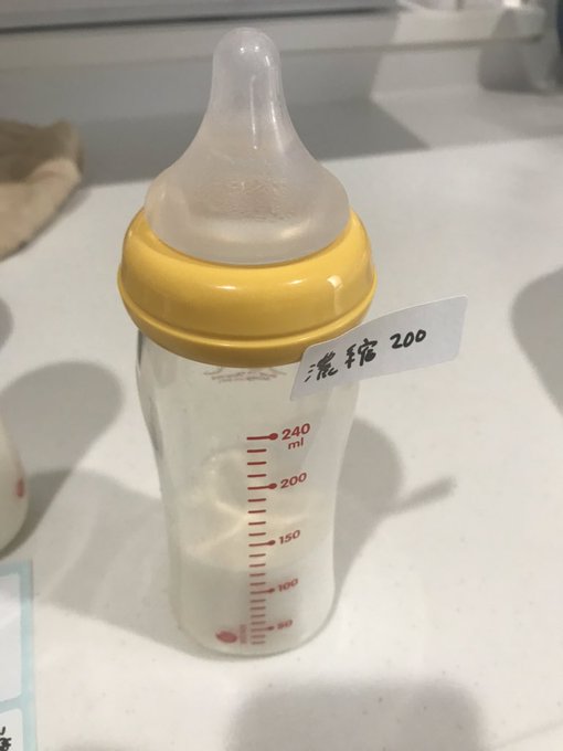 思い出しメモ。 産後しんどくて2ヶ月目からやってた授乳方法。 あくまで我が家流なので自己責任なのだけど、カルピス原液みたく濃縮ミルクを事前に作って冷蔵庫で保存して作ってた。 ミルク量にもよるけど1/3-1/2が濃縮液で、赤子が泣いたらお湯足して温度調整。 すぐ出来て夜とか楽だった。 #双子育児 pic.twitter.com/TxiahWQXyA