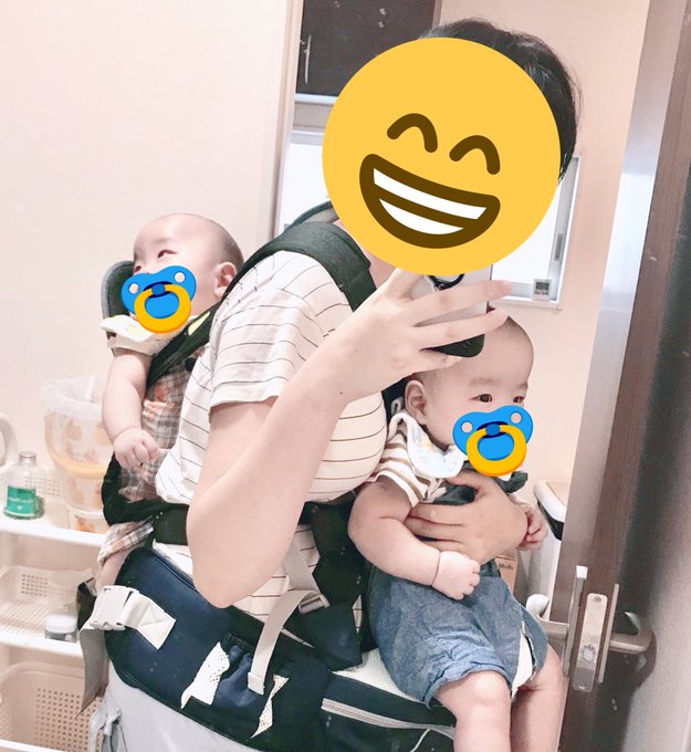 義母さんに昔ながらの抱っこ紐を買ってもらった😊 これ最初はつけるのにコツがいったけど同時泣きされた時とか寝かしつけとすごく助かるなぁ 両手が空くから家事が進むし、何かあった時にもう1人にも対応出来るのが嬉しい #双子育児便利グッズ #双子育児 pic.twitter.com/smxiZk7Ddt