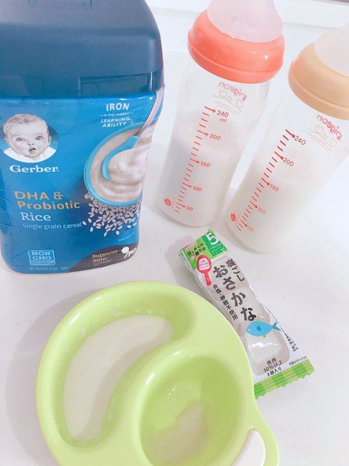 離乳食21日目 新食材おさかな 白身魚の正体はたらちゃん🐟 3日毎に新食材!なかなかいいペース なおこの21日の間に手作りした物は何一つなく、ブレンダーも使ってない。BFにお湯注ぐだけ。 離乳食前にアレコレ悩んだり、買った方がいいのではと迷う必要はなかった😄 #双子離乳食記録 pic.twitter.com/M3kHFknG7v