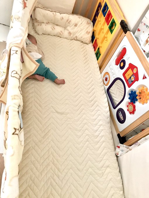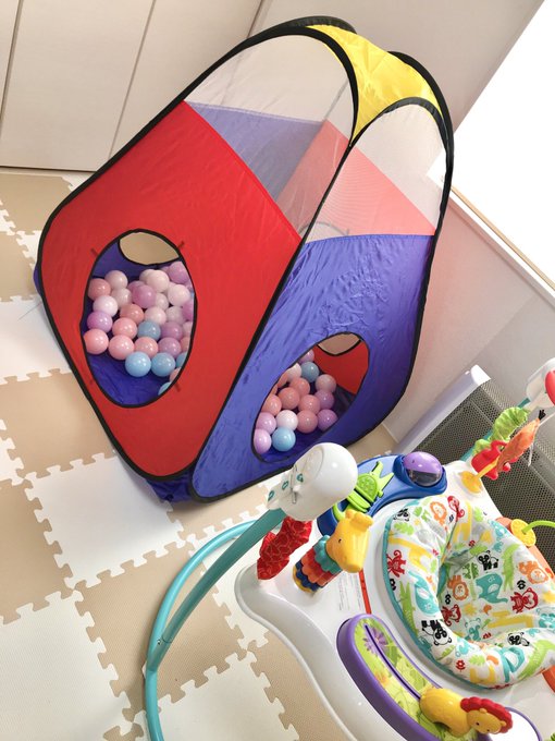 全く泣かず!ぶつかって泣く事もないし、サークルの形が問題だったんだね😣ゴメンネ https://pic.twitter.com/CKYwR0nIWA