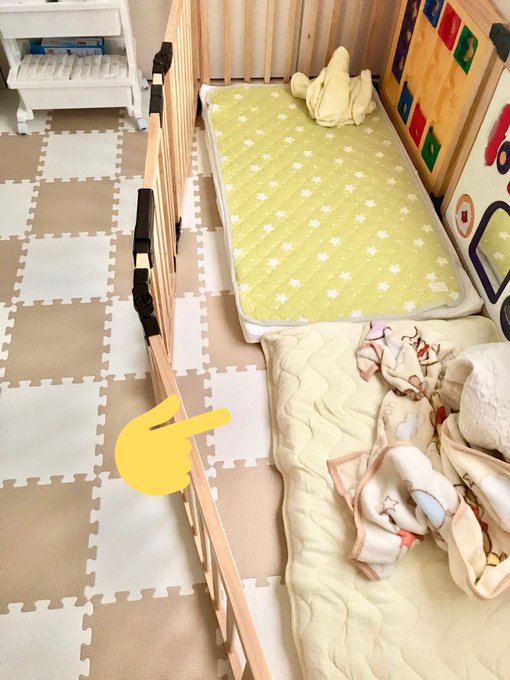 困ったのが敷布団とサークル壁の間に挟まって早朝に泣くこと😅